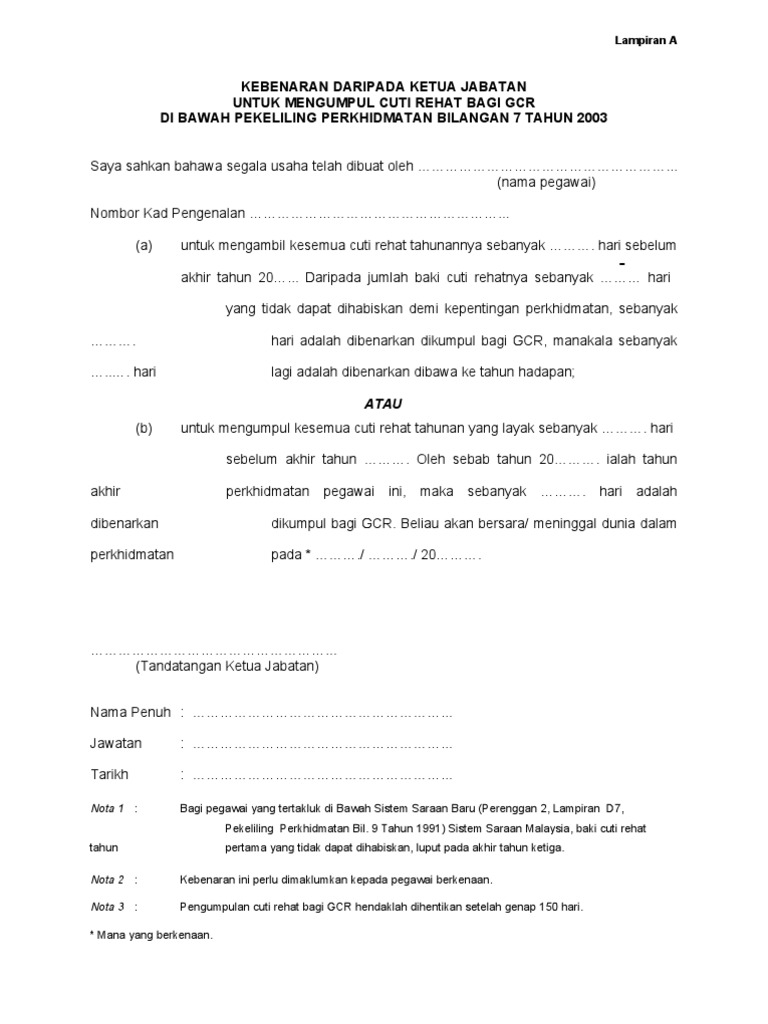 Jabatan perkhidmatan awam subject. Pegawai boleh menggunakan cuti ini secara sekaligus ataupun berperingkat dalam tempoh 12 bulan sebelum tarikh bersara tertakluk kepada kelulusan ketua jabatan. Berdasarkan peraturan sebelum ini gcr yang dikumpul melebihi 150 hari tidak diambil kira untuk bayaran tunai apabila penjawat awam bersara.