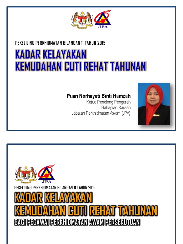 Slide Pek Perkh Bil 11 Tahun 2015 Kemudahan Cuti Rehat