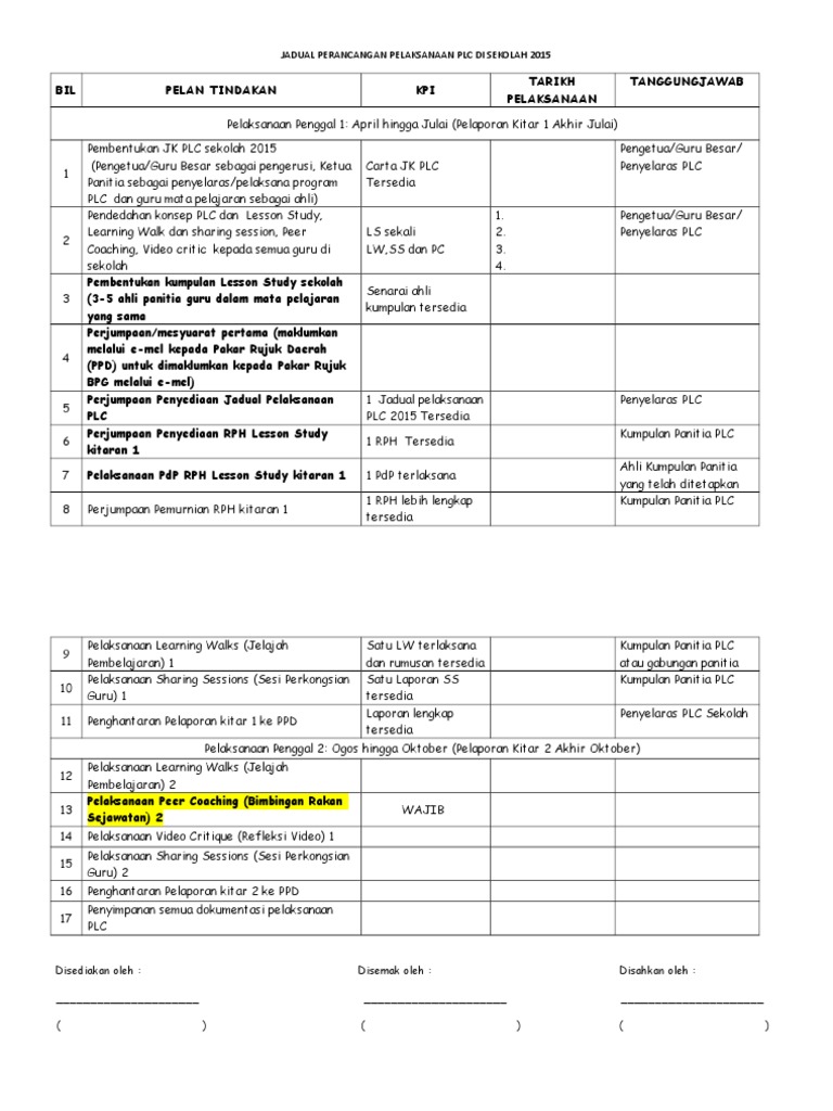 Jadual Perancangan Pelaksanaan Plc Di Sekolah 2020