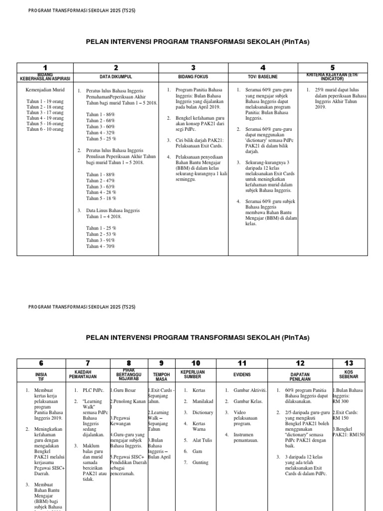 Pelan Intervensi Transformasi Sekolah Pintas Sk Pendamaran Jaya 2017