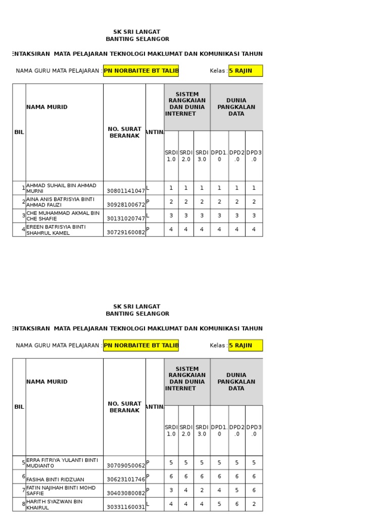 Xls Pelaporan Dskp Tmk Thn 5 Petra Krai Academia Edu