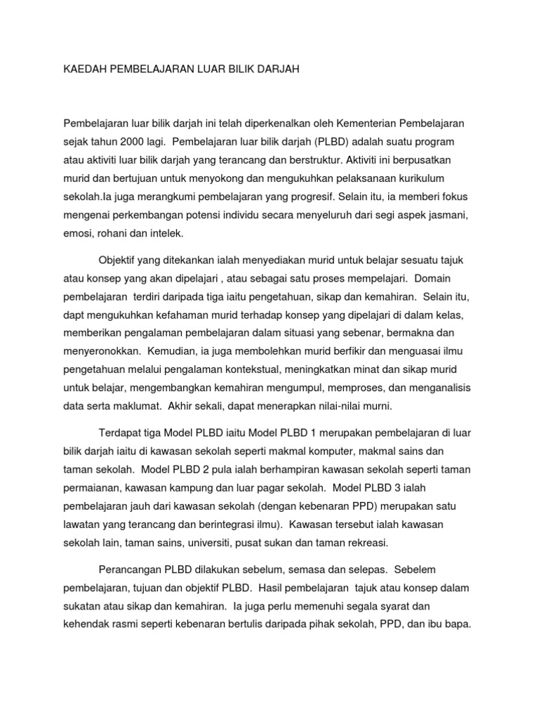 Pembelajaran Di Luar Bilik Darjah Plbd