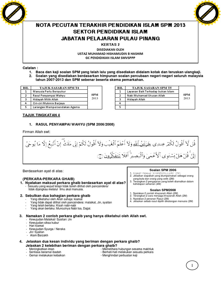 Modul Pendidikan Islam Soalan Spm Kertas1 Set 1