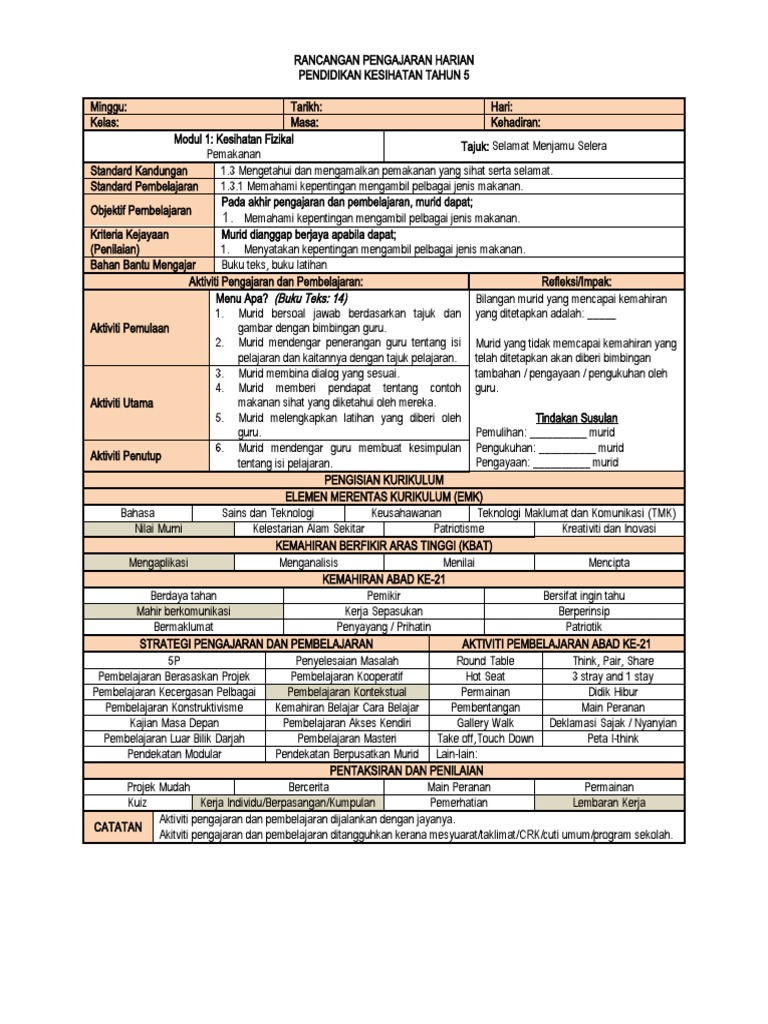 Panduan Pengajaran Guru Pendidikan Kesihatan Tahun 5 Kssr 2014 1