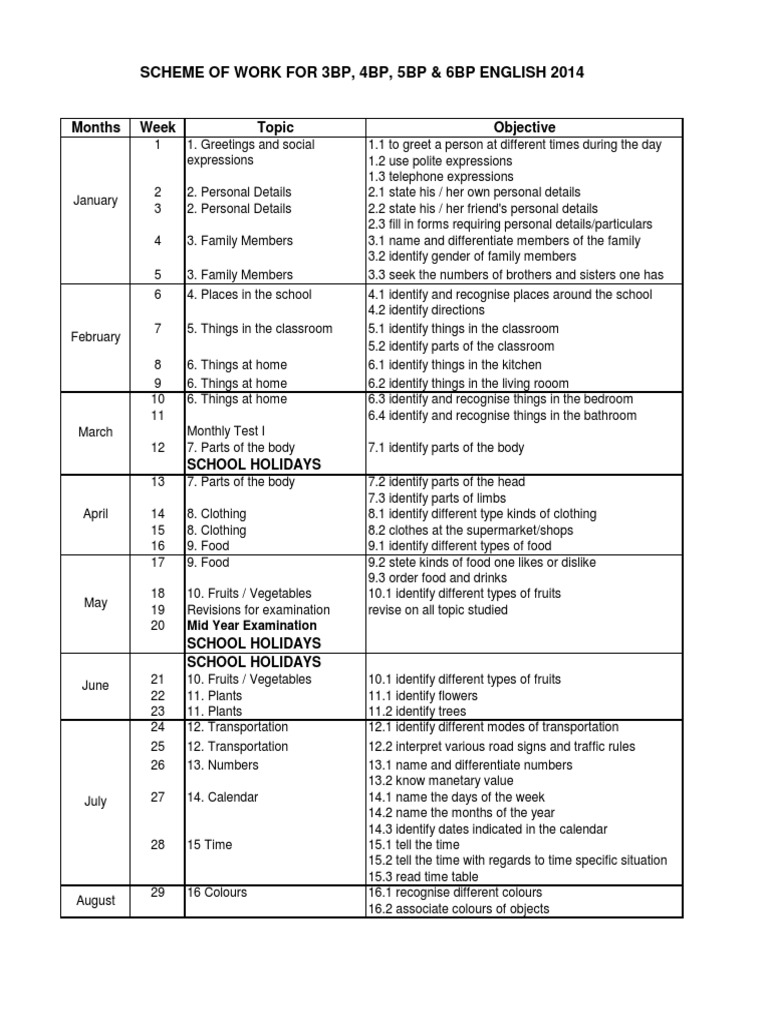 Scheme Of Work English Pendidikan Khas Test Assessment Foods