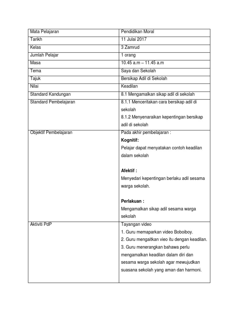 Bersikap Adil Rph Pendidikan Moral Tahun 3 Sumber Pendidikan
