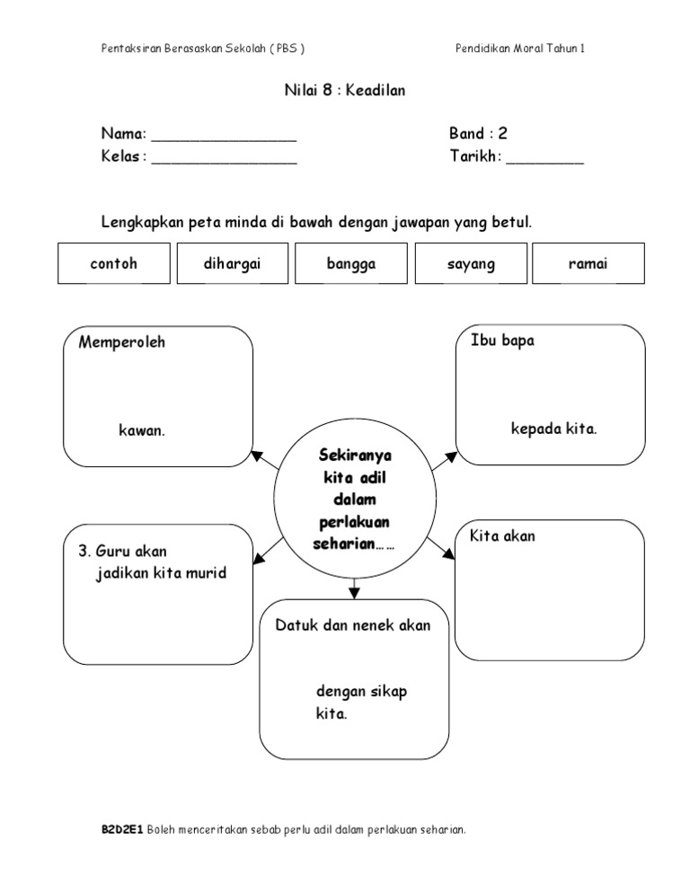Insrument Pbs Kssr Pendidikan Moral Tahun 1 Keadilan Band 2 E1