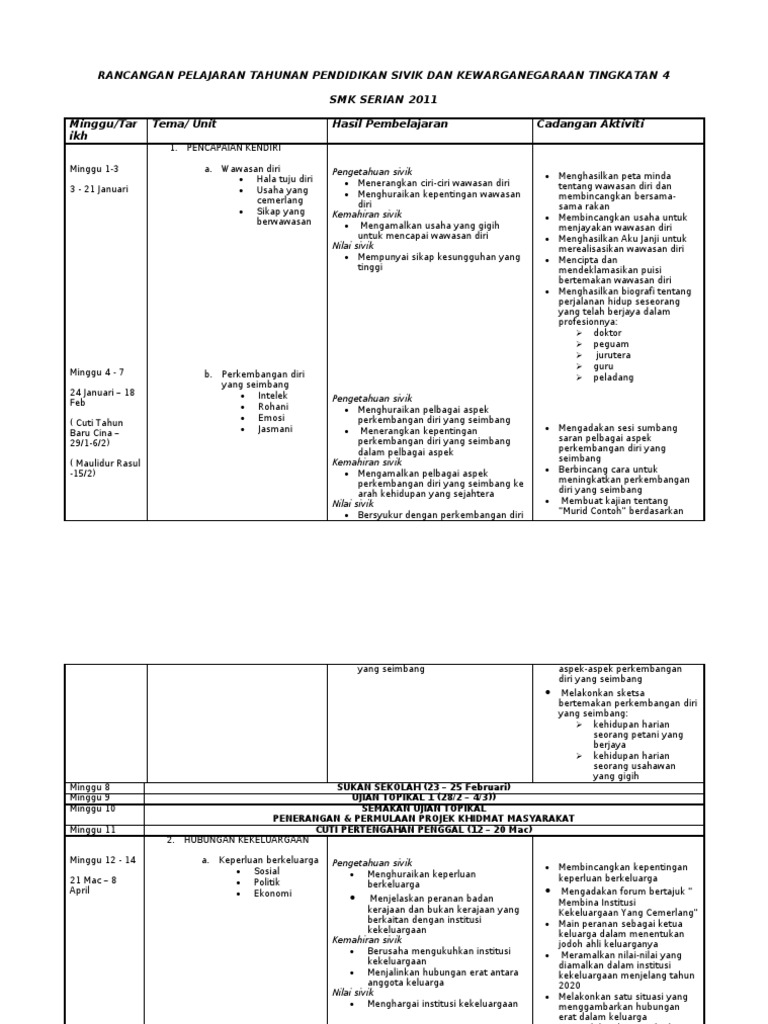 Rancangan Tahunan Pendidikan Sivik Dan Kewarganegaraan Tingkatan Satu