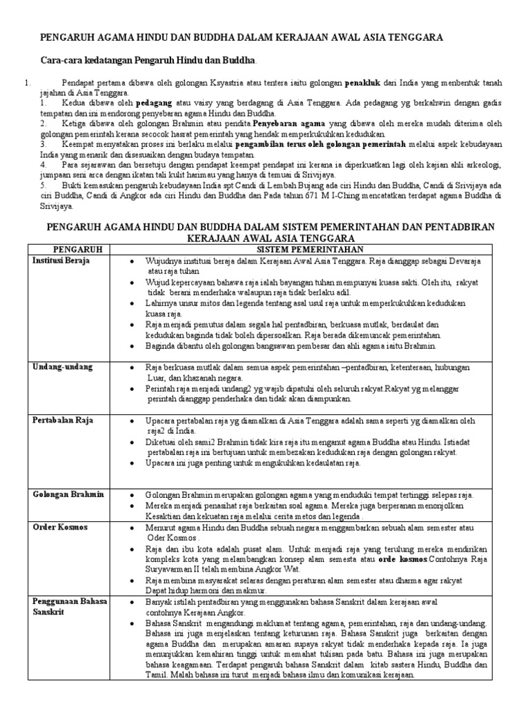 Pengaruh Agama Hindu Dan Buddha Dalam Kerajaan Awal Asia Tenggara