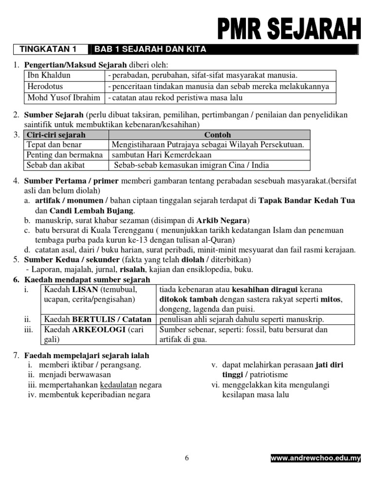 Nota Sejarah Tingkatan 1 Bab 1 2017