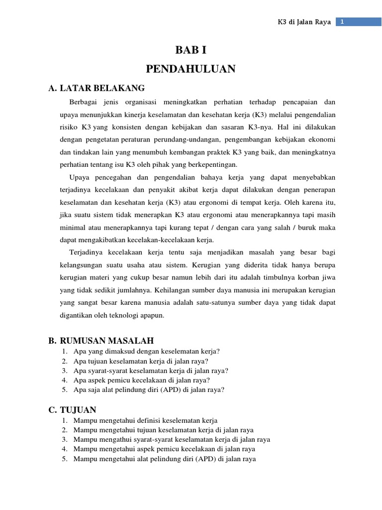 Keselamatan Kerja Di Jalan Raya