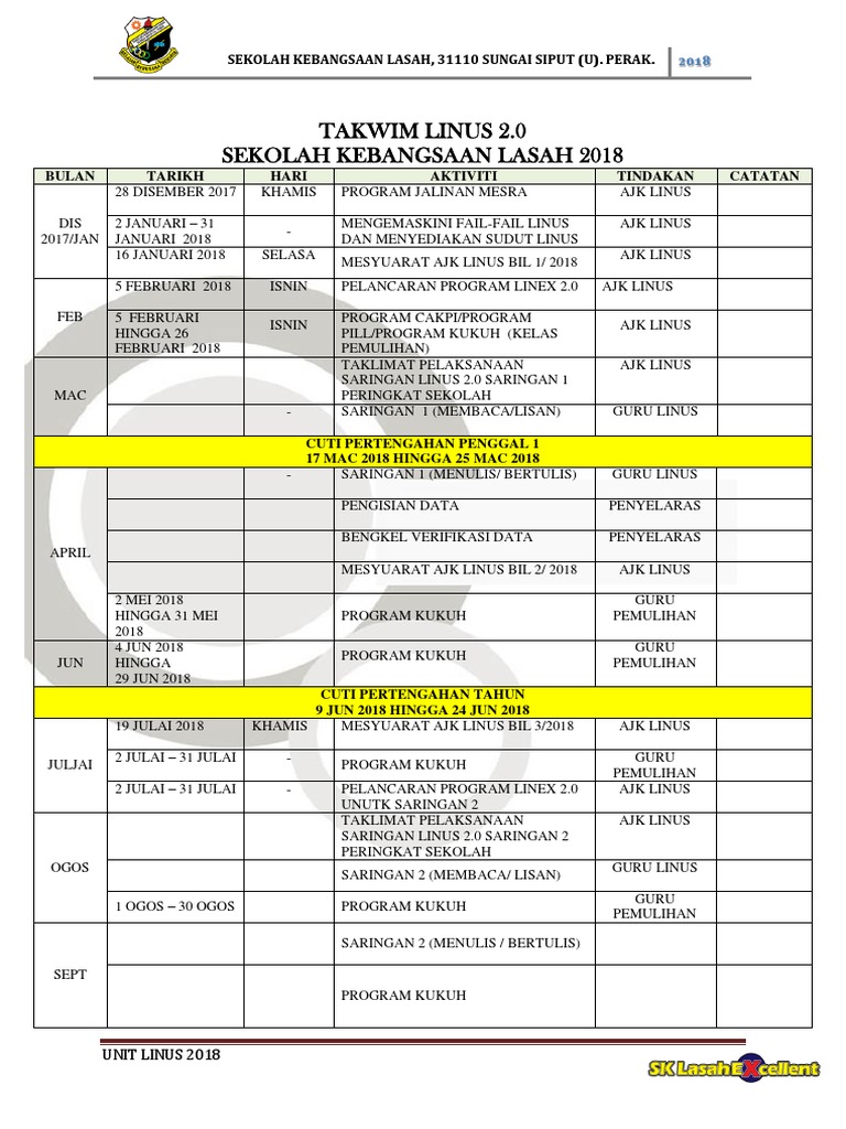 Takwim Linus 2 0 2018