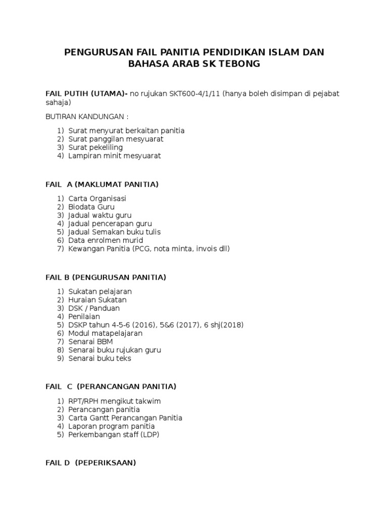 Pengurusan Fail Panitia Senarai Kandungan Fail Panitia Yang Lengkap Mycikgu Net