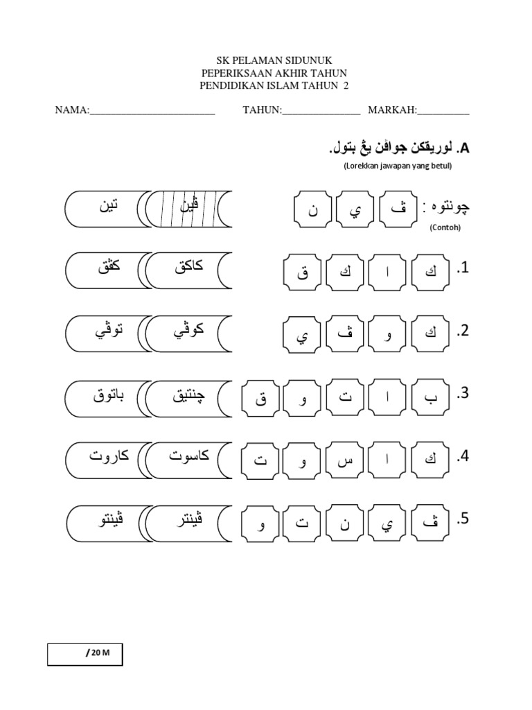 Contoh Soalan Peperiksaan Akhir Tahun 1 Pendidikan Islam J Kosong W