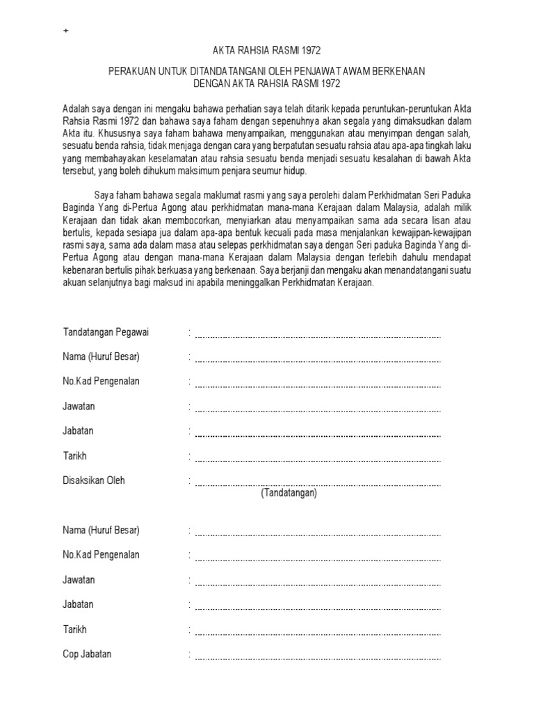 Akta Rahsia Rasmi Pdf Terhad Lampiran U2018d U2019 Perakuan Untuk Ditandatangani Oleh Penjawat Awam Berkenaan Dengan Akta Rahsia Rasmi 1972 Adalah Saya Course Hero