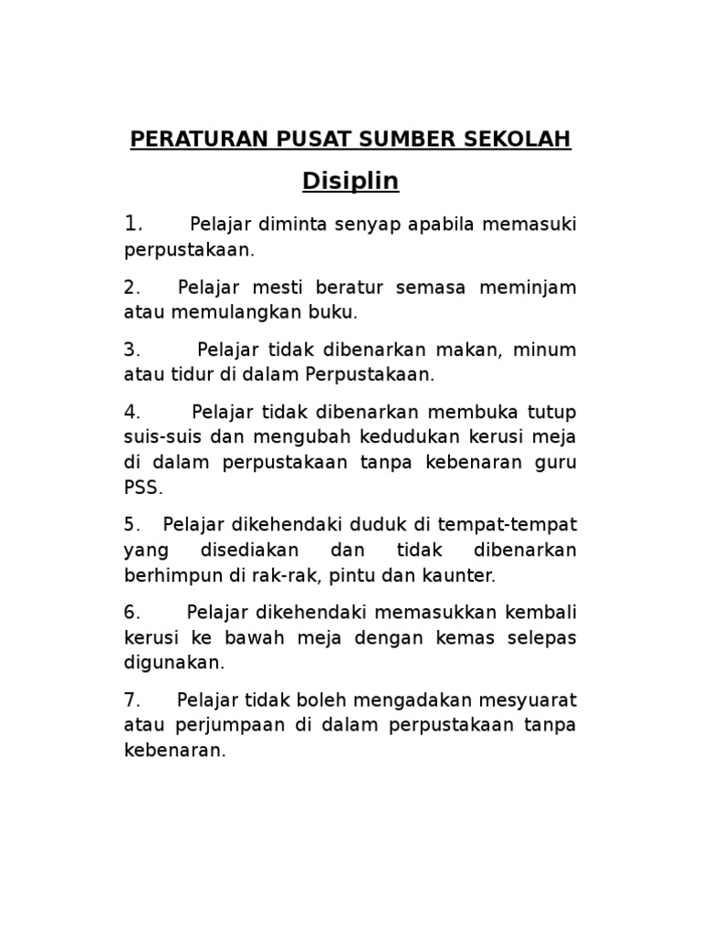 Peraturan Pss Pusat Sumber Sekolah