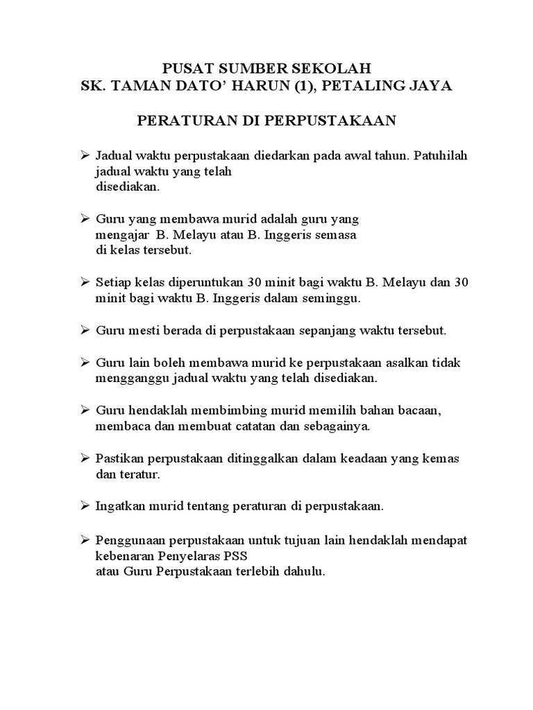 Pusat Sumber Sekolah Peraturan Pusat Sumber Sk Bangsar