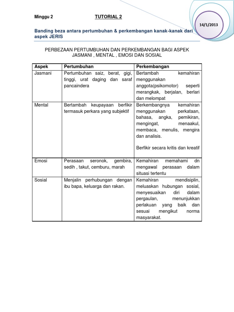 Perbezaan Antara Pertumbuhan Dan Perkembangan Kanak