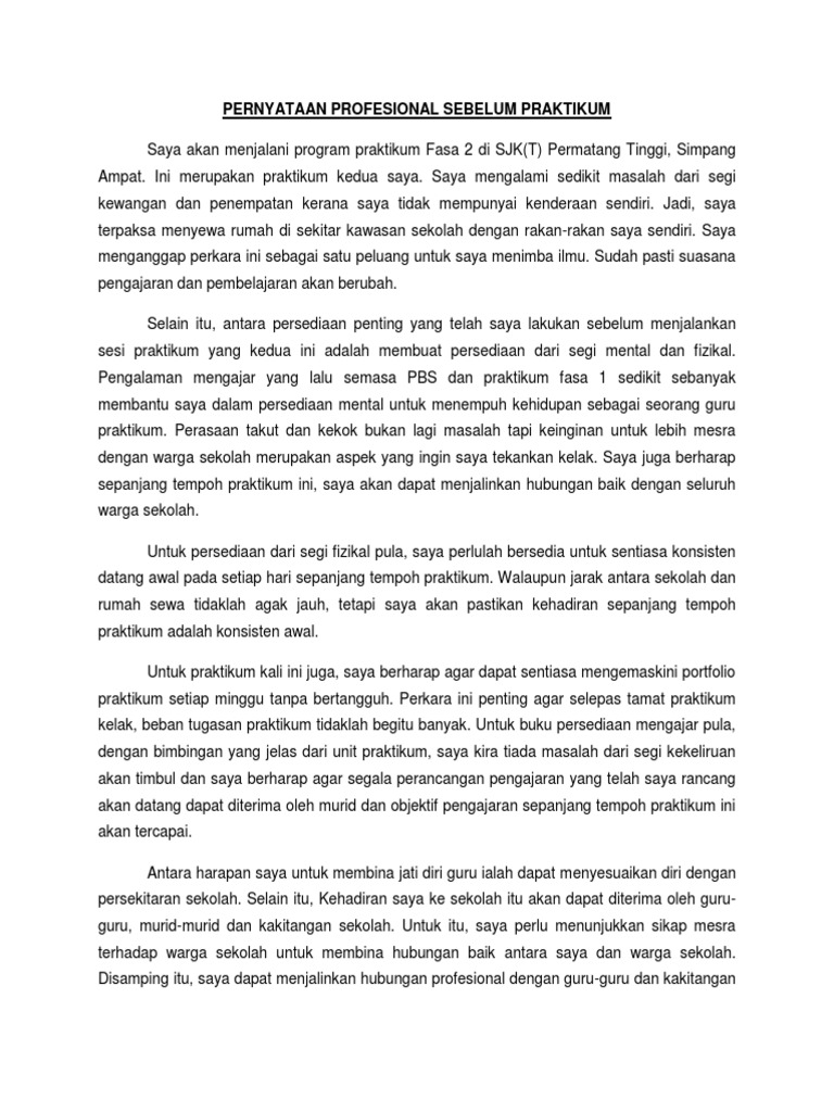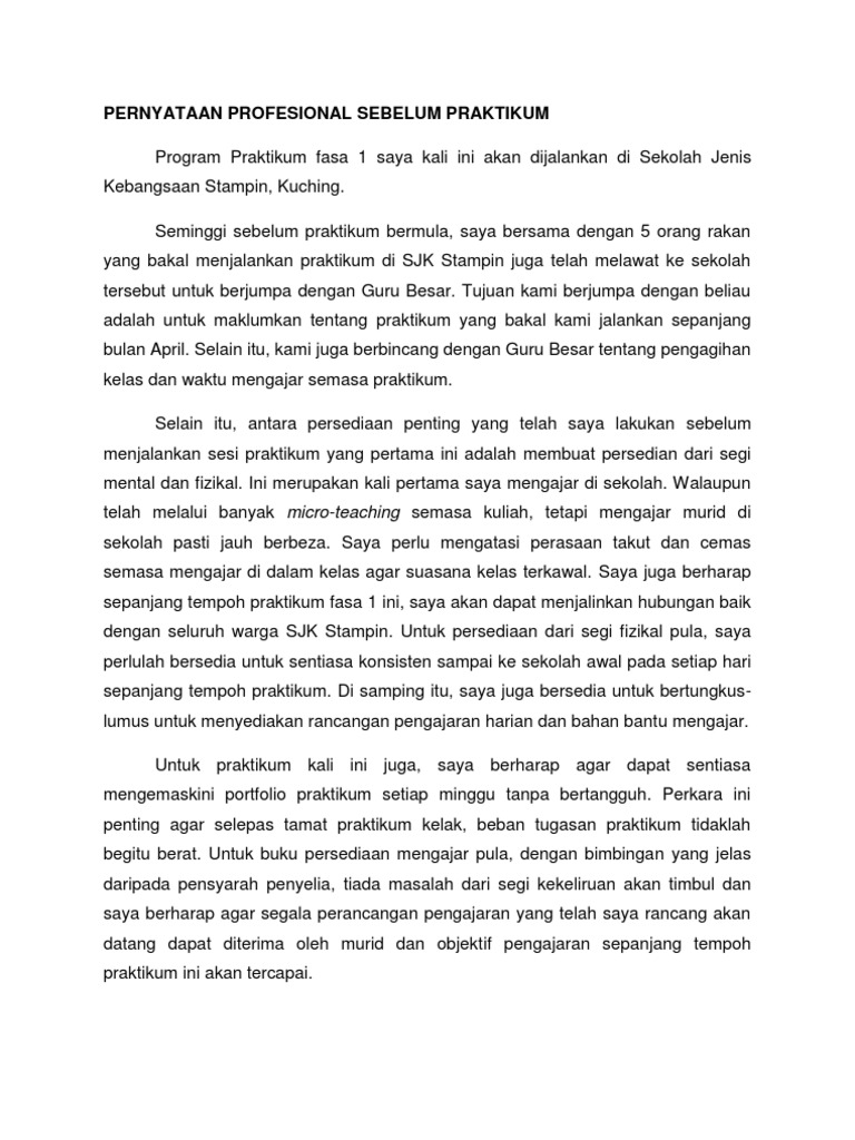 Doc Pernyataan Profesional Internship 2012 Sebelum Internship Yamunah Subramaniam Academia Edu