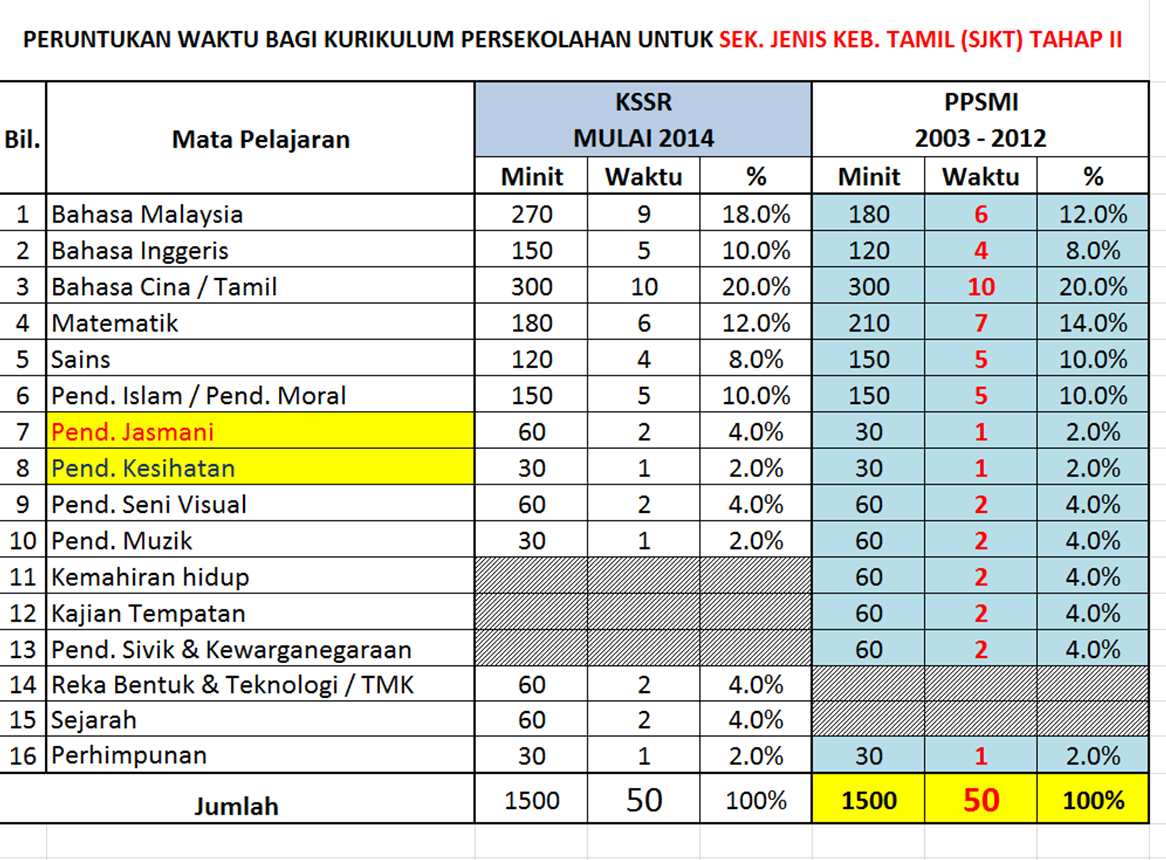 Cikgu Nort Peruntukan Waktu Kssr Bagi Kurikulum Persekolahan Tahap 1 Dan 2 Bagi 2014