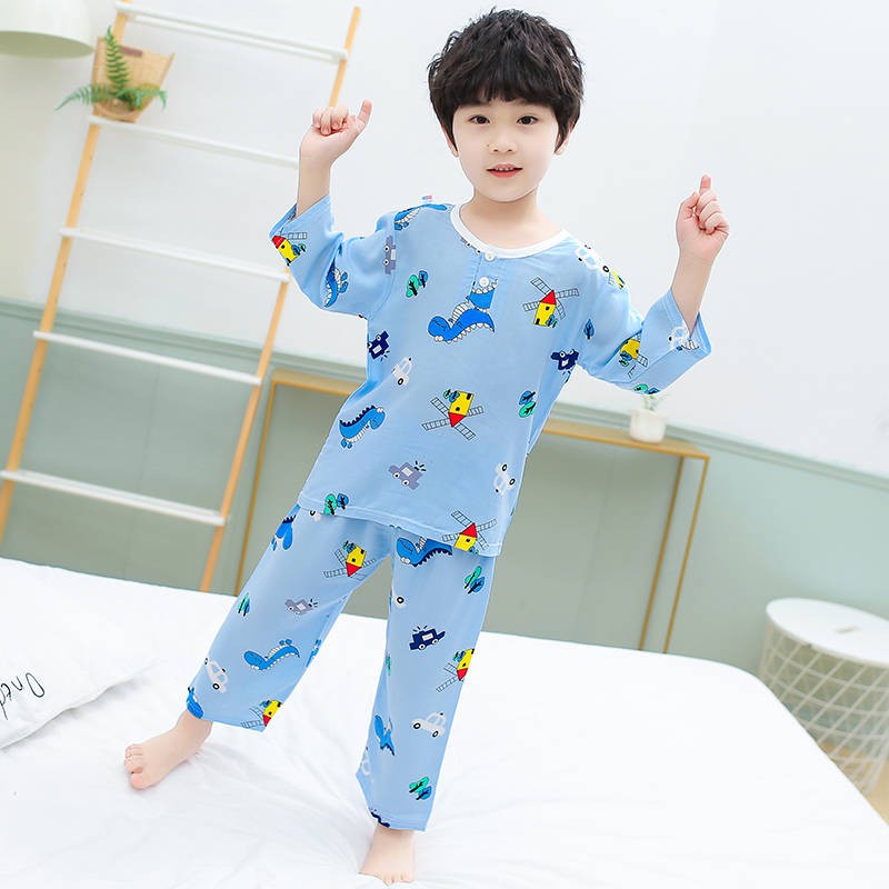 Baju Tidur Budak Pajamas Pyjamas Baju Tidur Sleepwear Seluar Nightwear Baju Budak Lelaki Seluar Tidur Baju Budak Kids Clothing Piyama Kanak Kanak Lengan Panjang Musim Panas Pakaian Sutera Kapas Sutra Kanak Kanak Lelaki Dan Perempuan