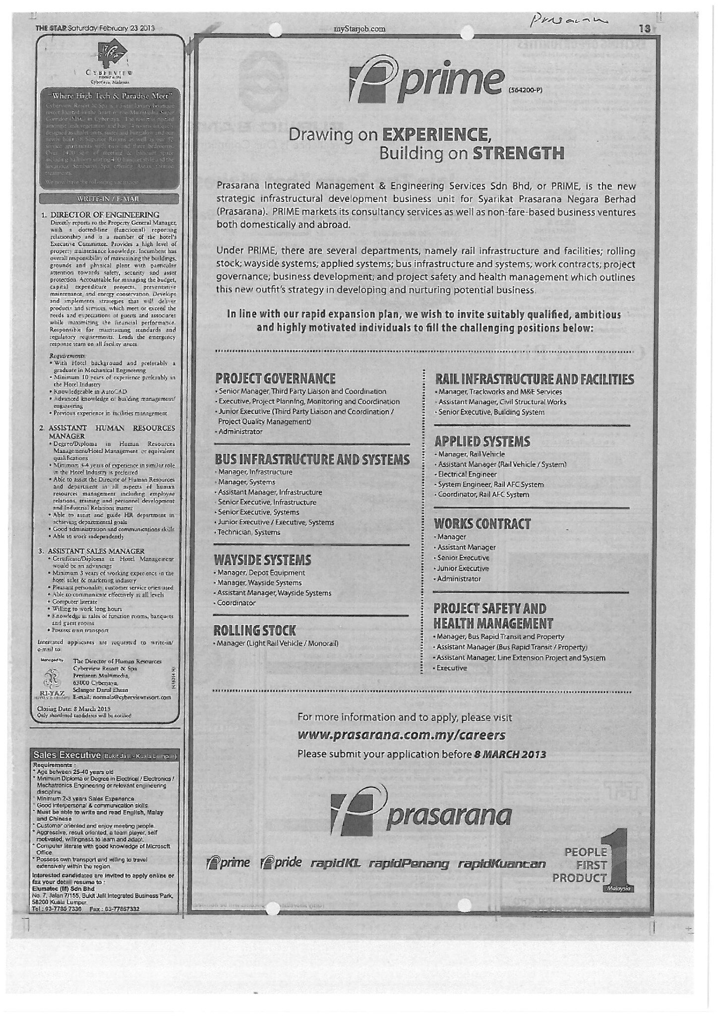 Prasarana Malaysia Berhad On Twitter More Vacancies Under Prime A Subsidiary Of Prasarana For More Details Kindly Log On Http T Co Lhjwrs6kbm Http T Co Yw3jrdwak2