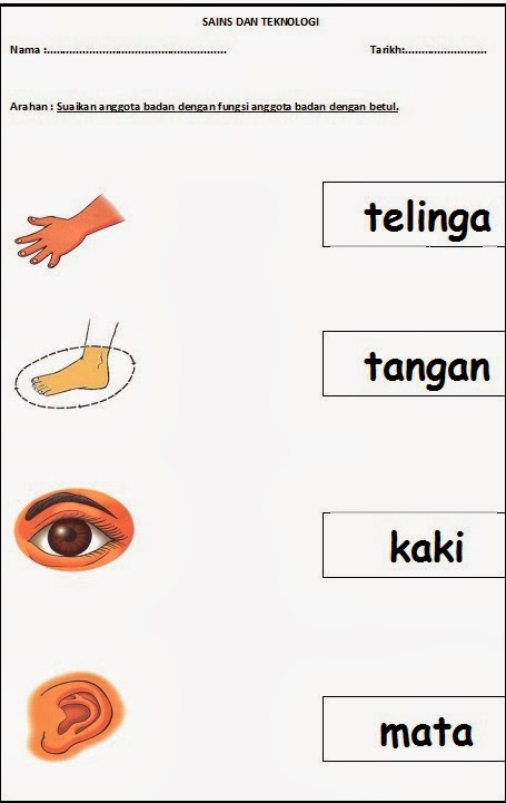 Prasekolah Sk Ulu Kakus Lembaran Kerja Bertema Badan Saya