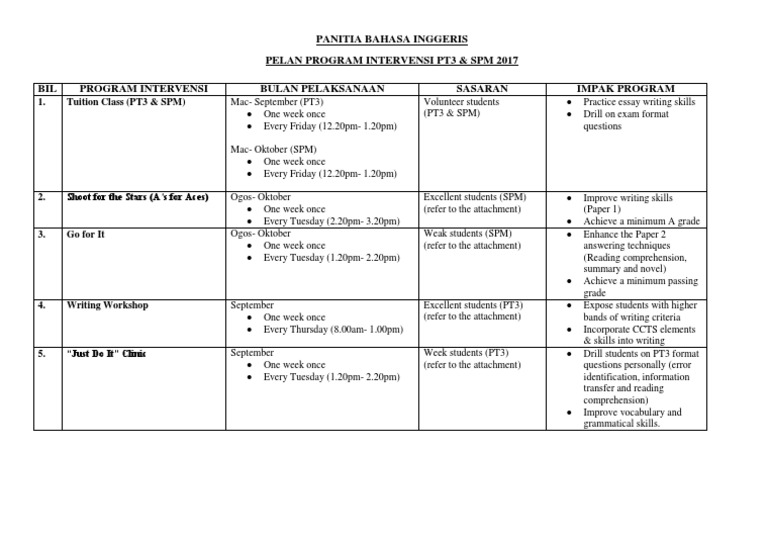 Program Intervensi Bahasa Inggeris Spm 2018
