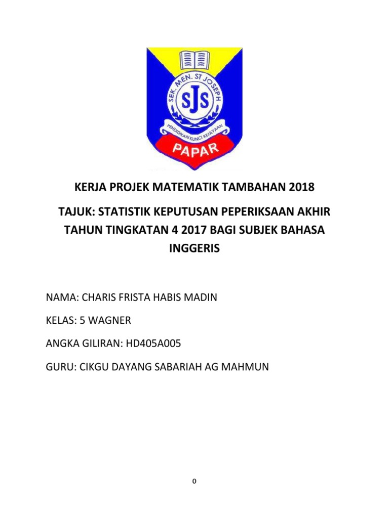 Kerja Projek Matematik Tambahan Docx Kerja Projek Matematik Tambahan Kpmt 2018 Smk St Joseph Papar Statistik Keputusan Peperiksaan Akhir Tahun 2017 Course Hero