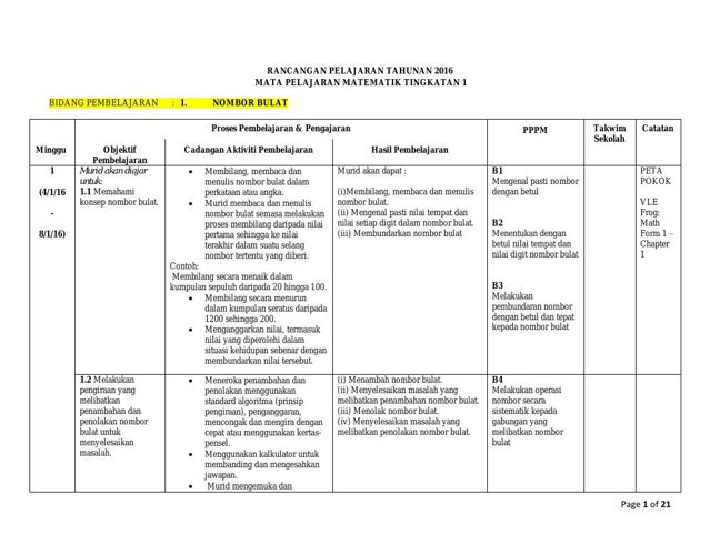 Rancangan Pengajaran Tahunan Geografi Tingkatan 1 Dan 2 Tahun 2018
