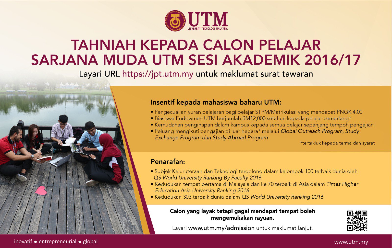 Universiti Teknologi Malaysia Utm On Twitter Tahniah Kepada Semua Yang Berjaya Terpilih Ke Utm New Intake Utm Newstudents Congratulations