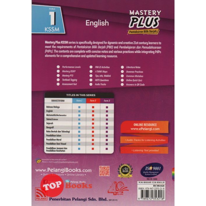 Topbooks Pelangi Mastery Plus Kssm English Form 1 2020 Shopee Malaysia