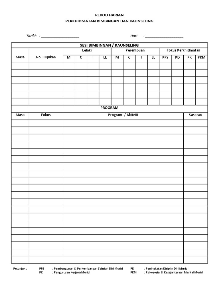 Rekod Harian Perkhidmatan Bimbingan Dan Kaunseling